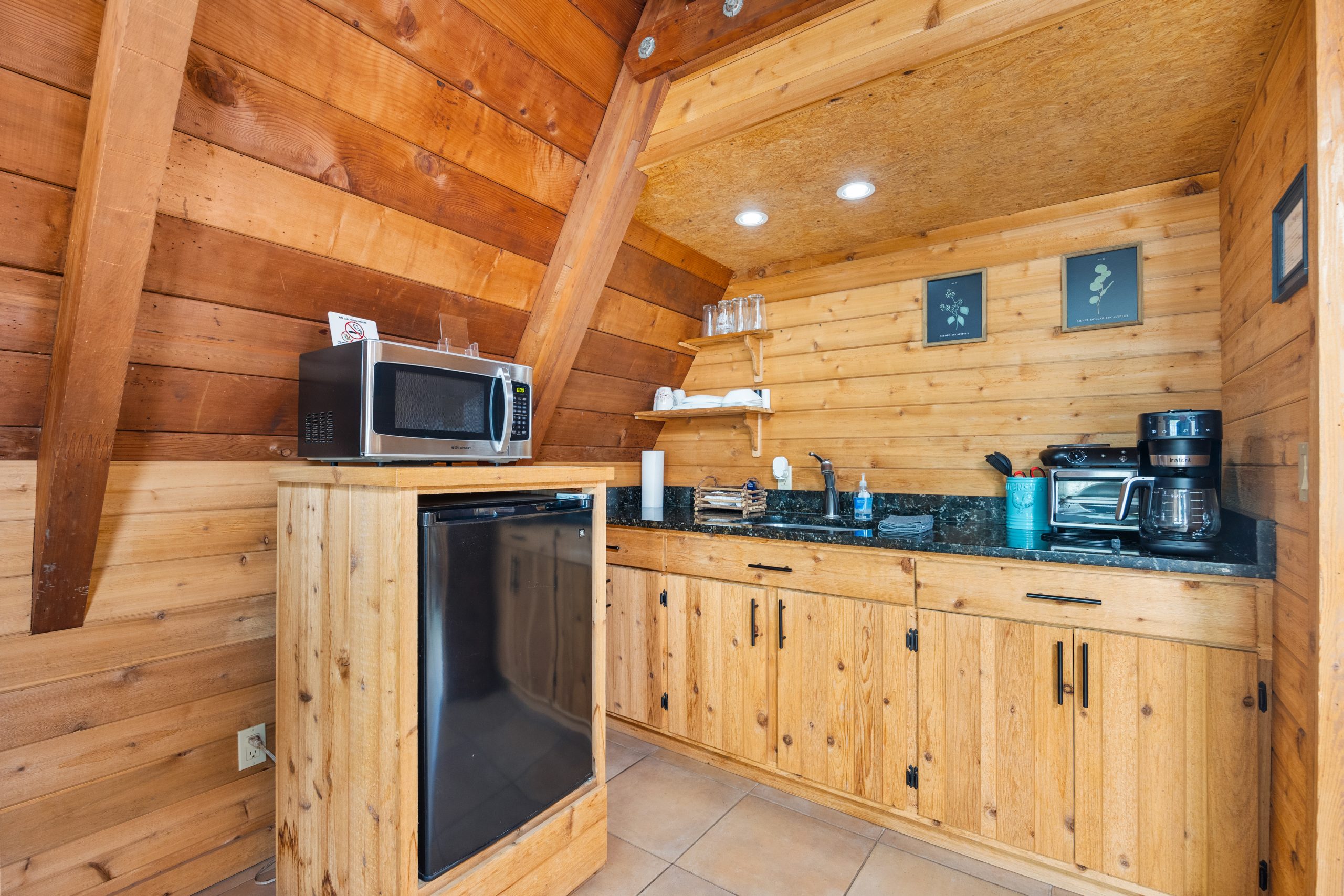 This charming Historic A-Frame Chalet provides a cozy retreat for up to four guests, offering comfort and beautiful views of the surrounding landscape. Sleep soundly in the queen Murphy bed downstairs or in the loft’s queen bed, accessible by a stylish spiral staircase.